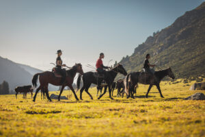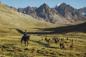 • Day 1 meeting at the guesthouse in Bishkek transfer to mountain village dinner meeting the family and horses shower available