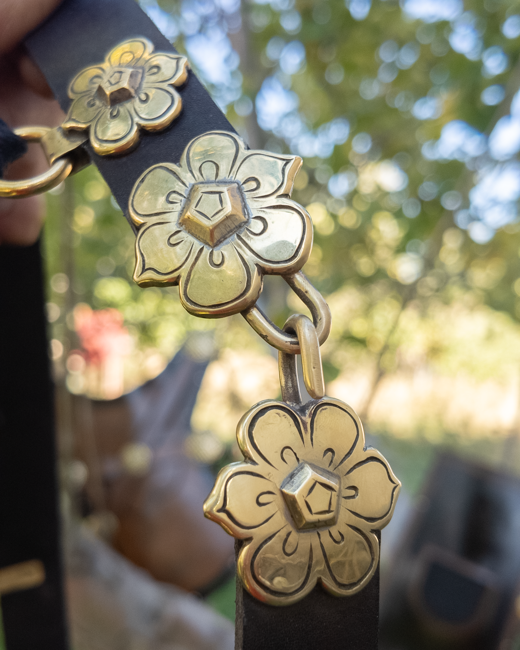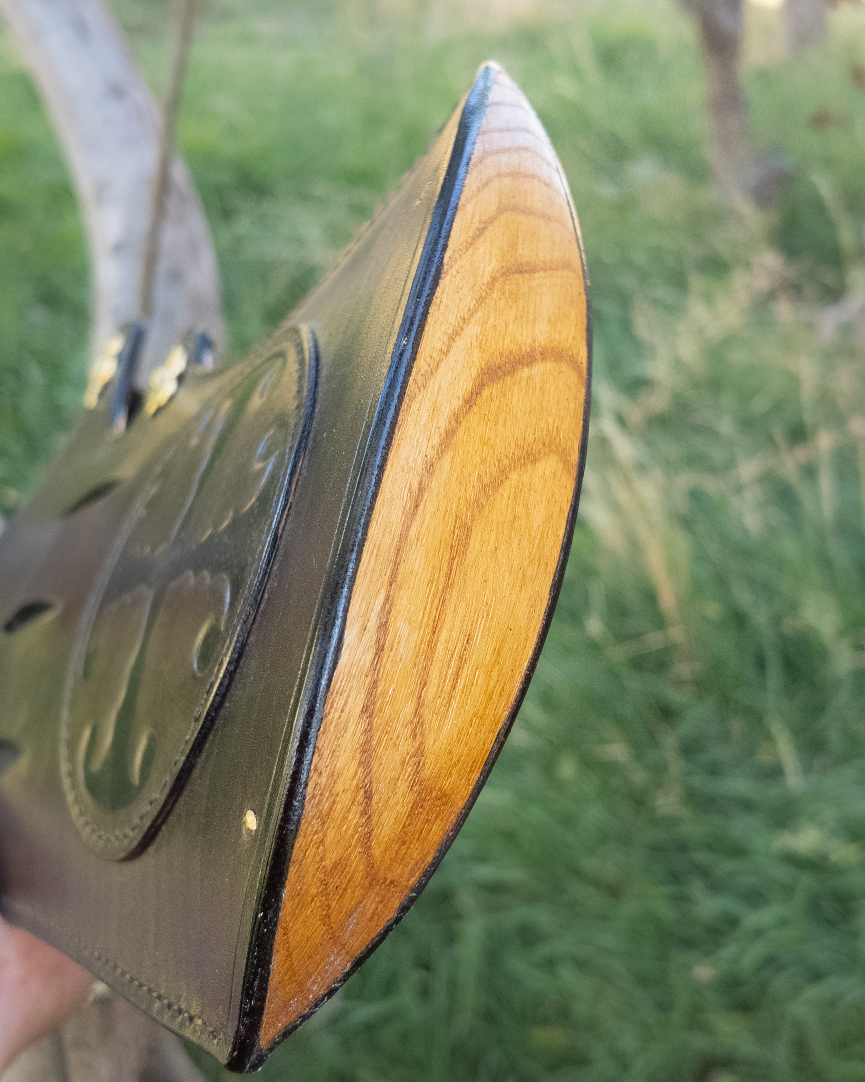 My quivers are based or free inspired by historical mounted quivers which were used by asian horse archers. They are attached by three cords to the belt, to provide stability during gallop on horse, inside is a folded felt which holds arrows on the place and don’t allow arrows to jump out of the quiver.They are made of vegetable tanned cow leather, handmade sewn. Fittings are made by me too, made of brass or nickel silver (an alloy of copper and zinc). Usually I decorate them by engraving or other jewelry techniques to make ornaments on them.